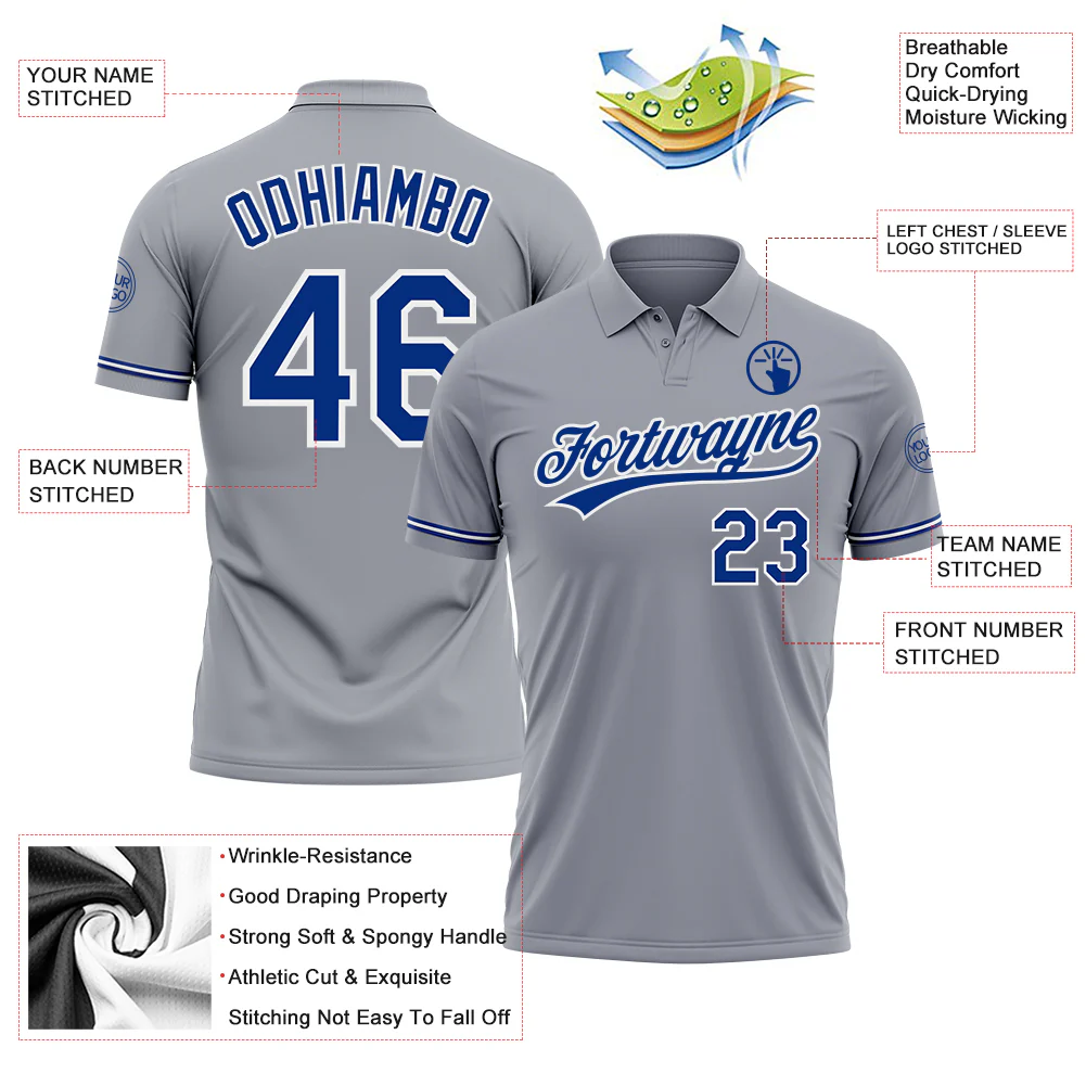 Custom Gray Royal-White Performance Vapor Golf Polo Shirt