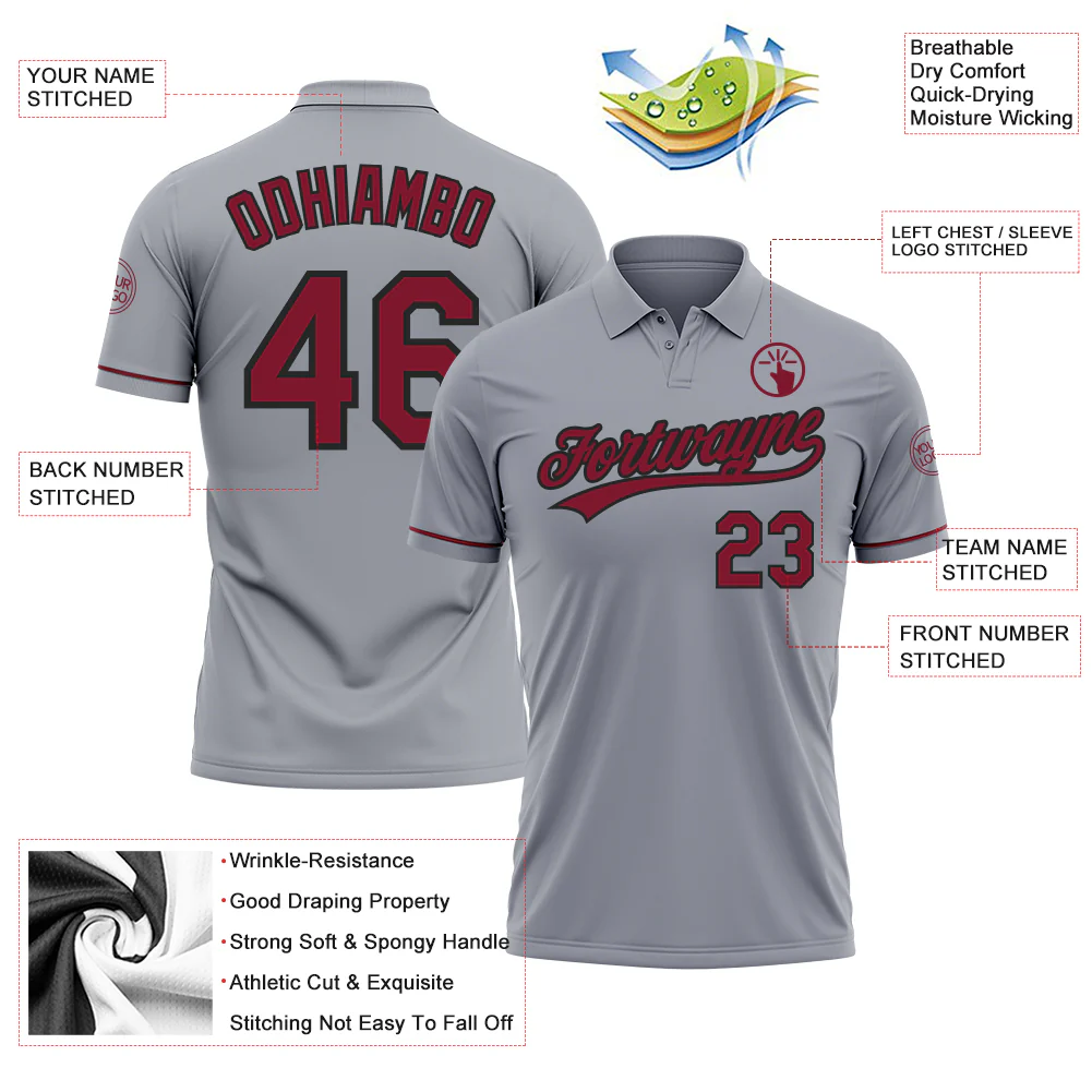 Custom Gray Crimson-Black Performance Vapor Golf Polo Shirt