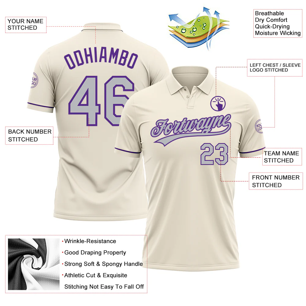 Custom Cream Gray-Purple Performance Vapor Golf Polo Shirt