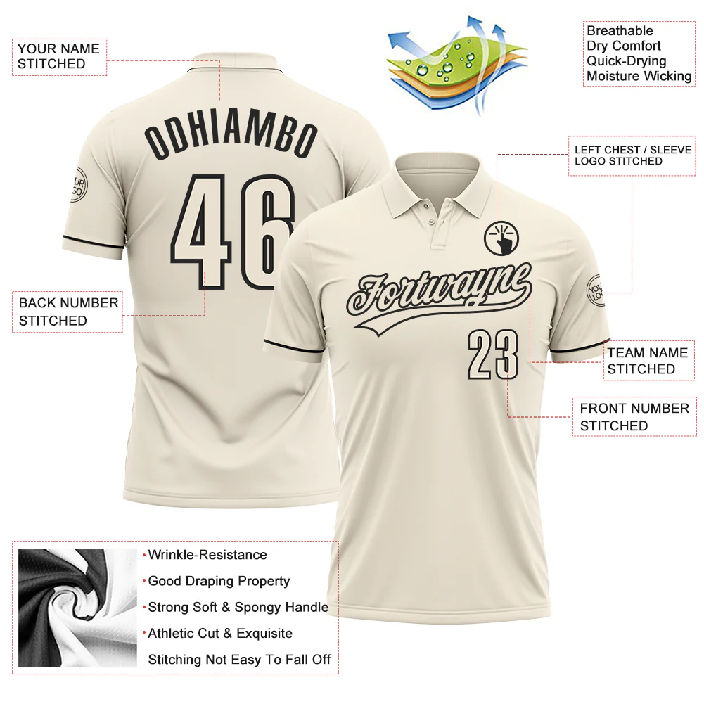Custom Cream Black Performance Vapor Golf Polo Shirt
