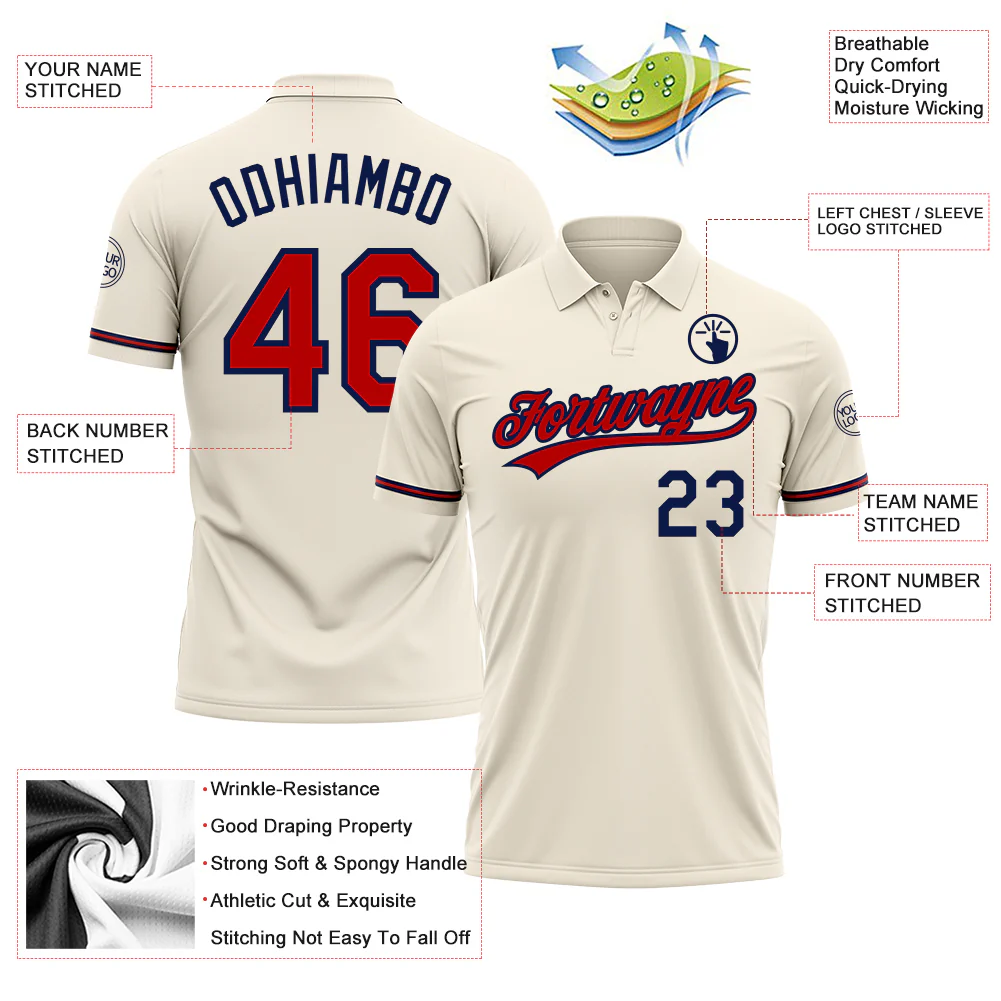Custom Cream Red-Navy Performance Vapor Golf Polo Shirt