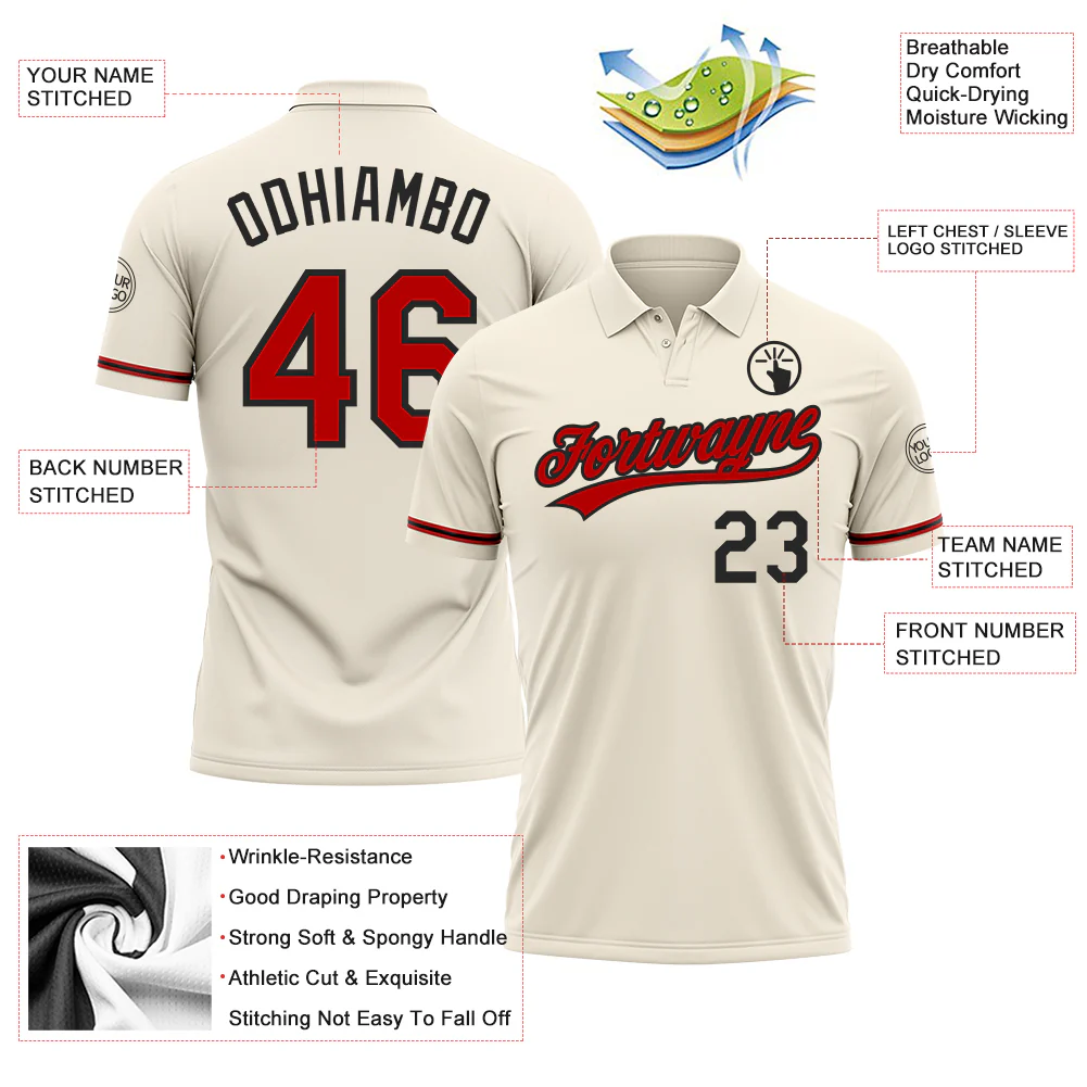 Custom Cream Red-Black Performance Vapor Golf Polo Shirt