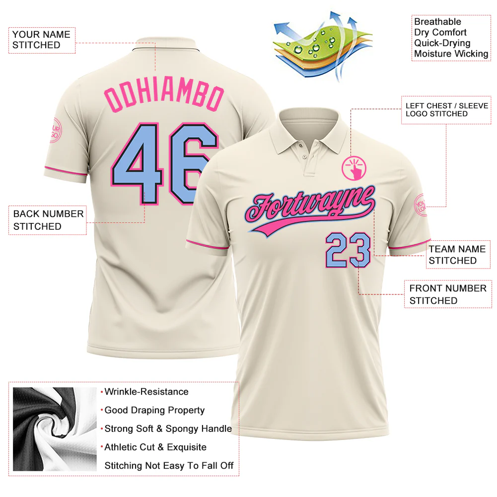 Custom Cream Light Blue Black-Pink Performance Vapor Golf Polo Shirt