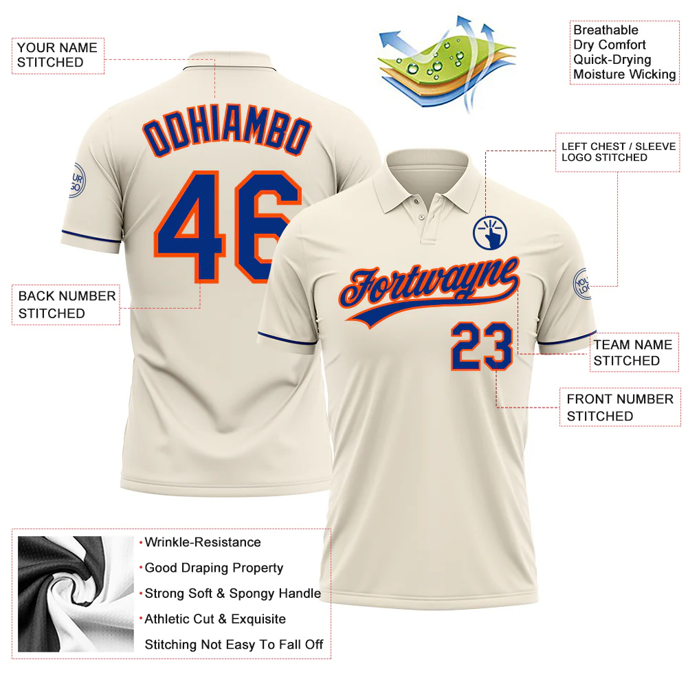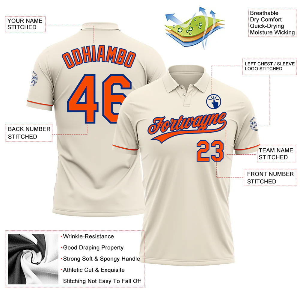 Custom Cream Orange-Royal Performance Vapor Golf Polo Shirt