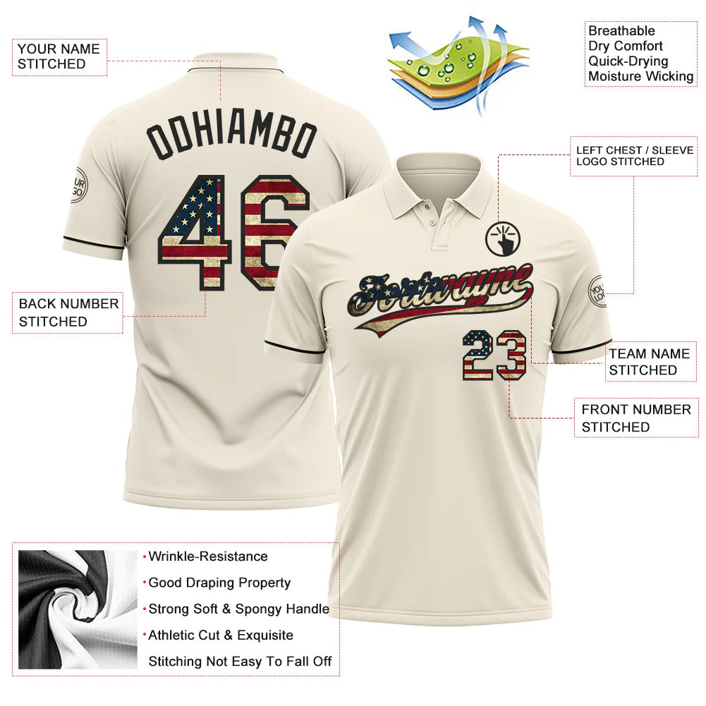 Custom Cream Vintage USA Flag-Black Performance Vapor Golf Polo Shirt