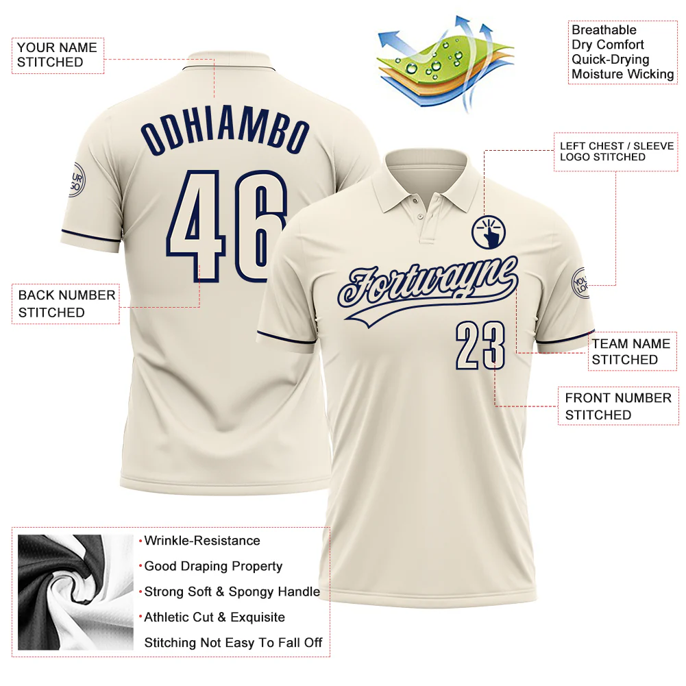 Custom Cream Navy Performance Vapor Golf Polo Shirt