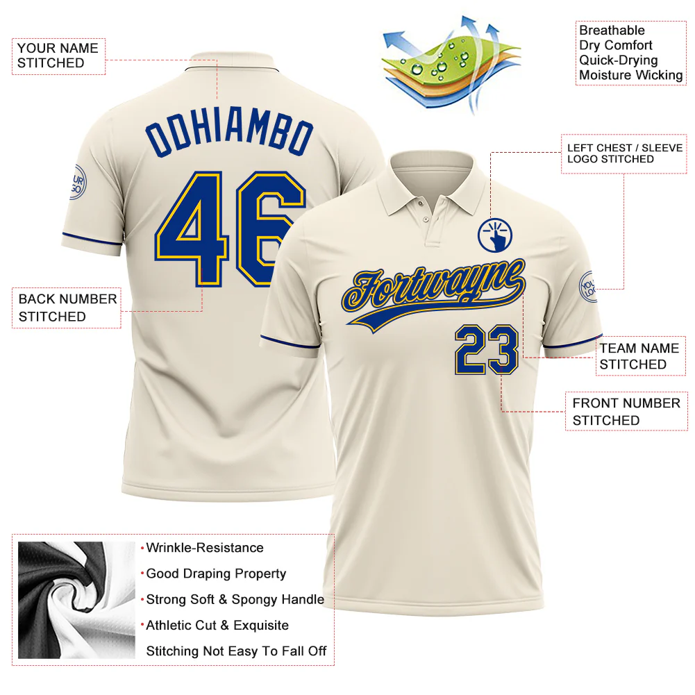 Custom Cream Royal-Yellow Performance Vapor Golf Polo Shirt