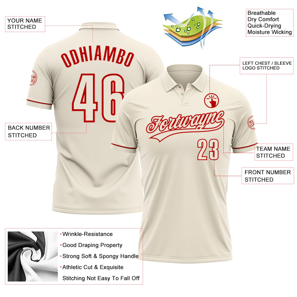 Custom Cream Red Performance Vapor Golf Polo Shirt