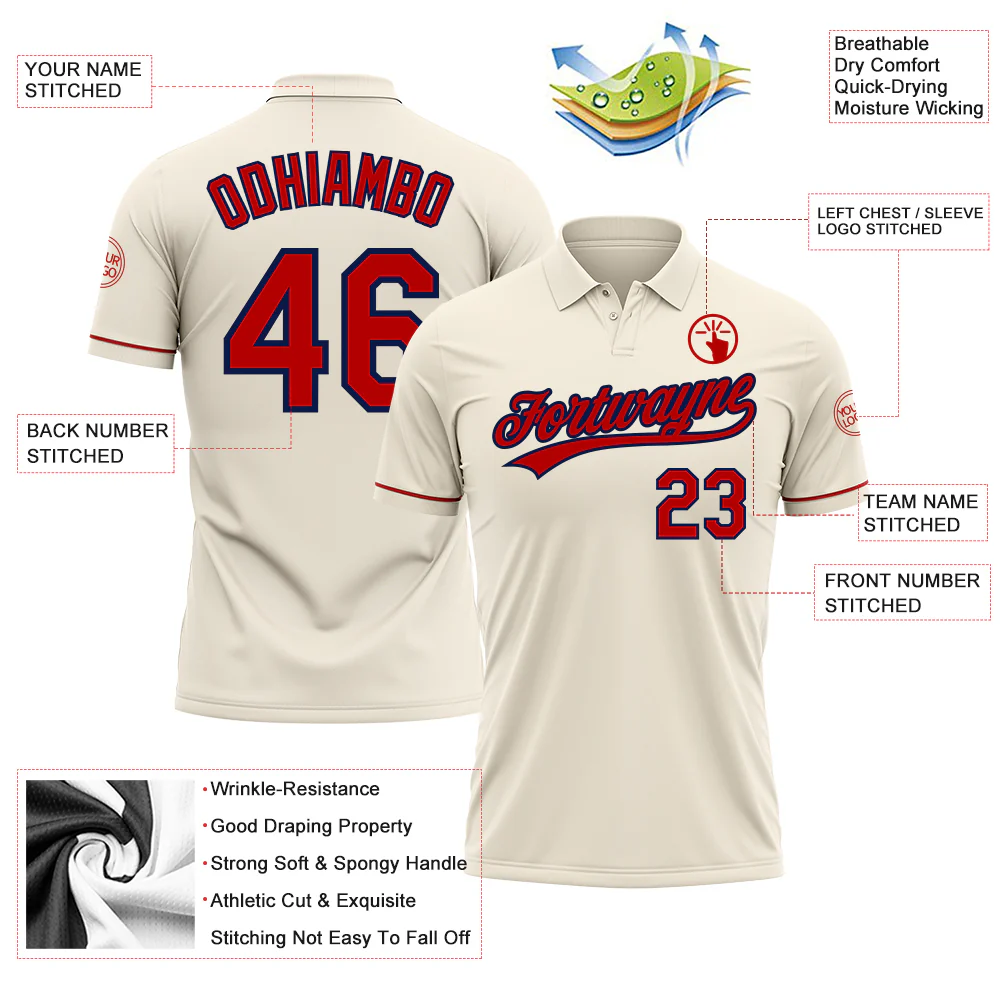 Custom Cream Red-Navy Performance Vapor Golf Polo Shirt