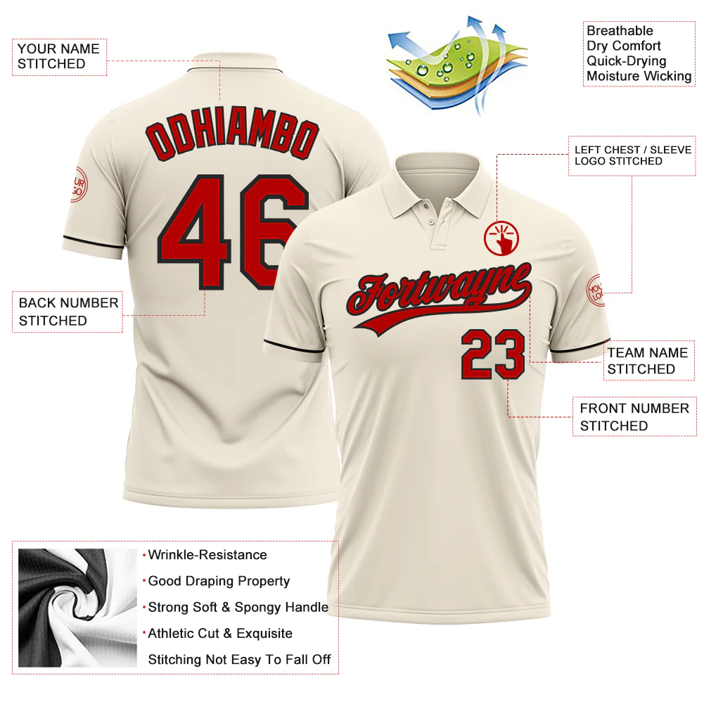 Custom Cream Red-Black Performance Vapor Golf Polo Shirt