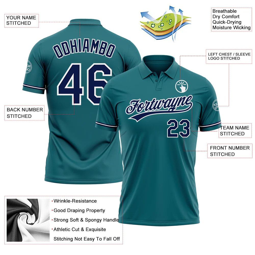 Custom Teal Navy-White Performance Vapor Golf Polo Shirt