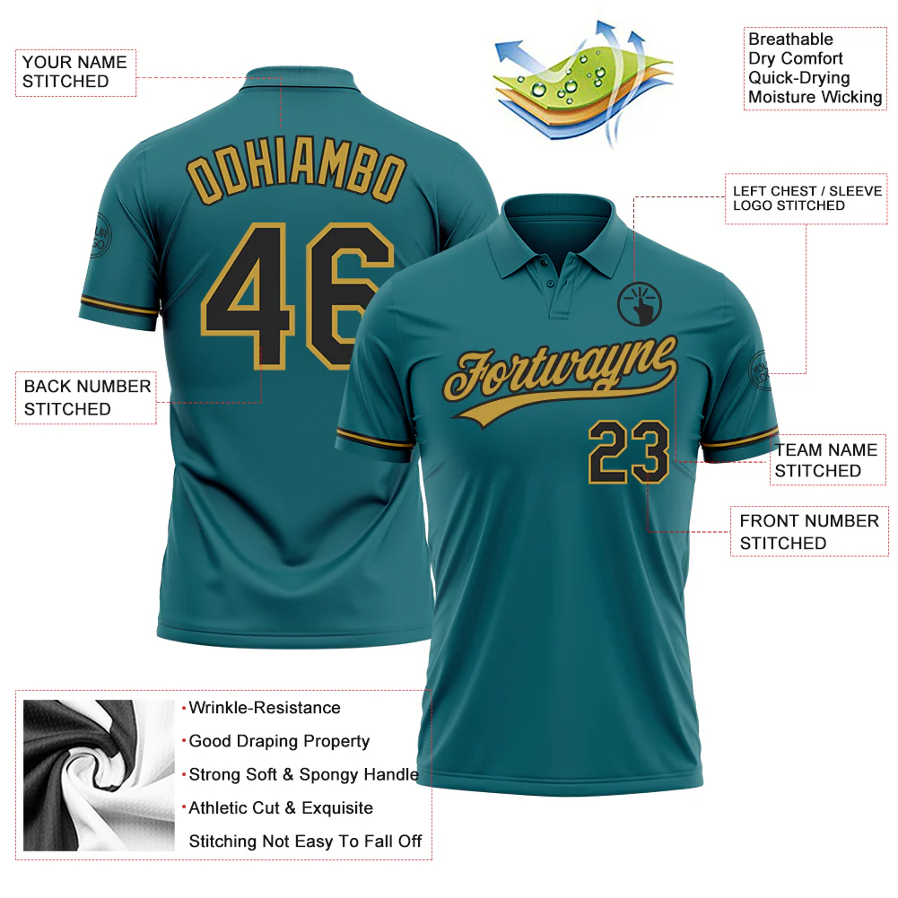 Custom Teal Black-Old Gold Performance Vapor Golf Polo Shirt