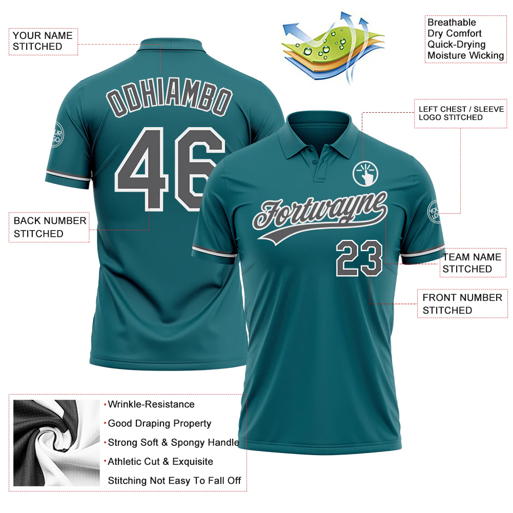 Custom Teal Steel Gray-White Performance Vapor Golf Polo Shirt