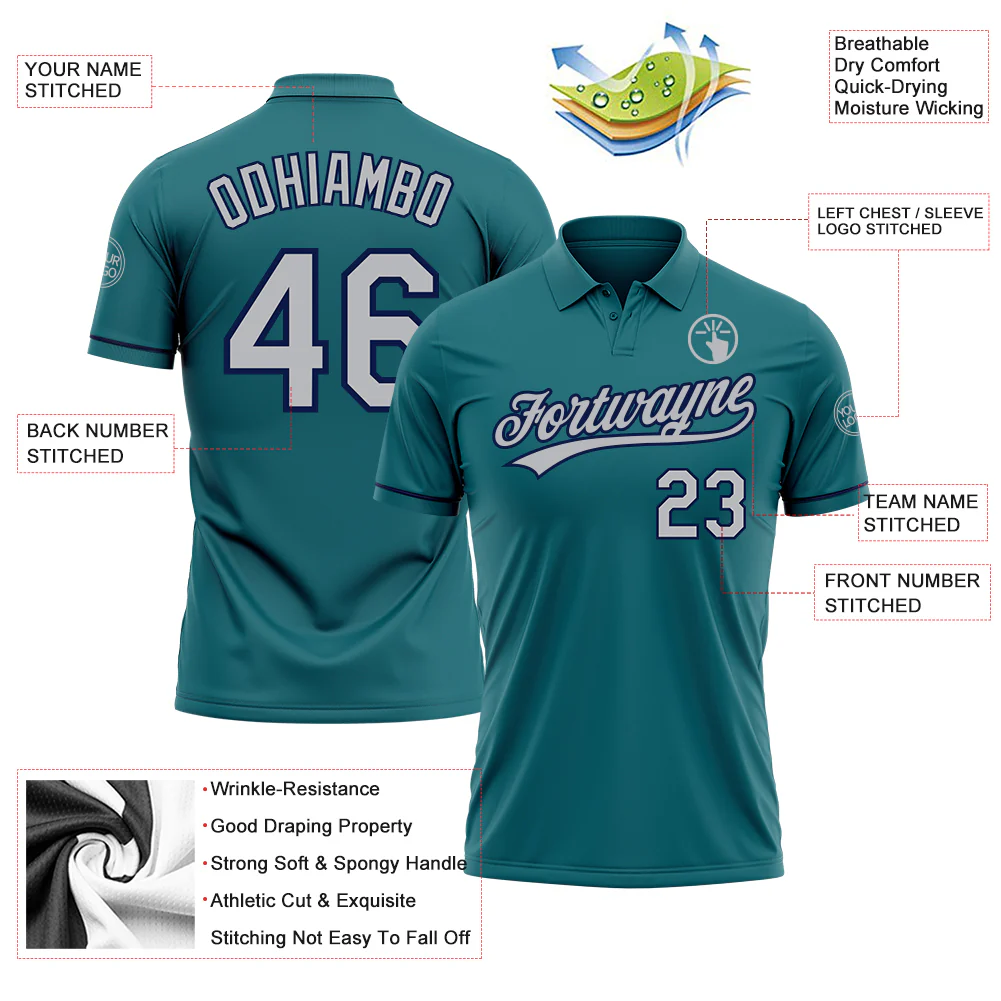 Custom Teal Gray-Navy Performance Vapor Golf Polo Shirt