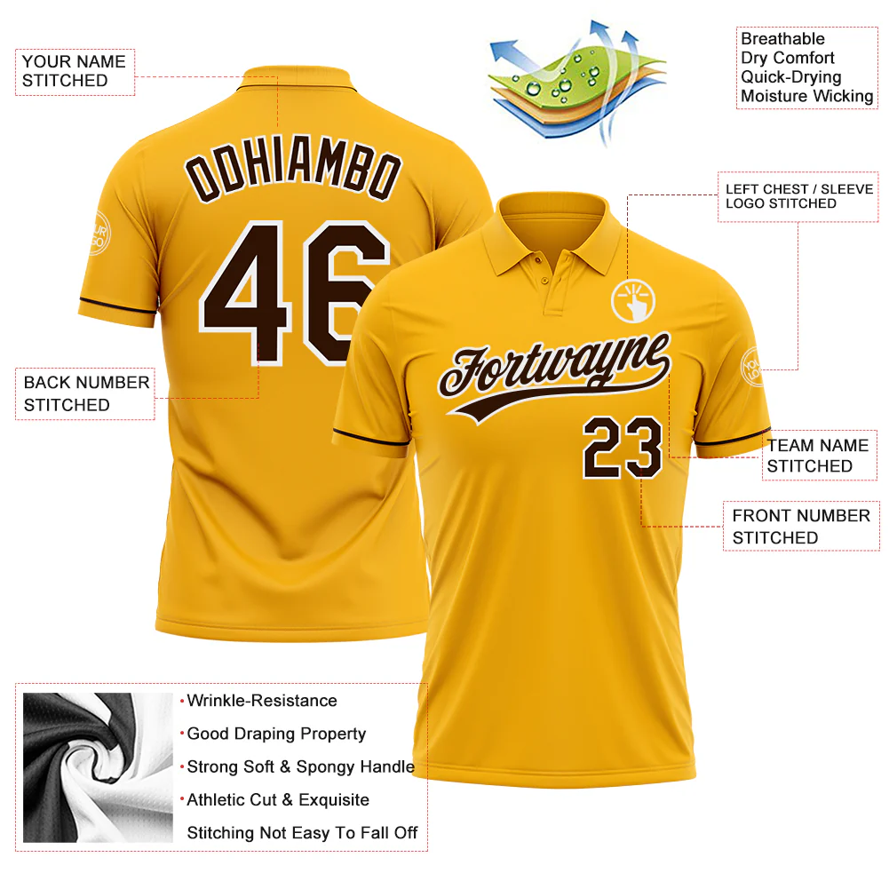 Custom Gold Brown-White Performance Vapor Golf Polo Shirt