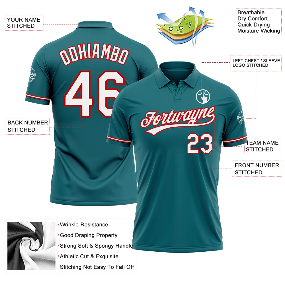 Custom Teal Red-White Performance Vapor Golf Polo Shirt