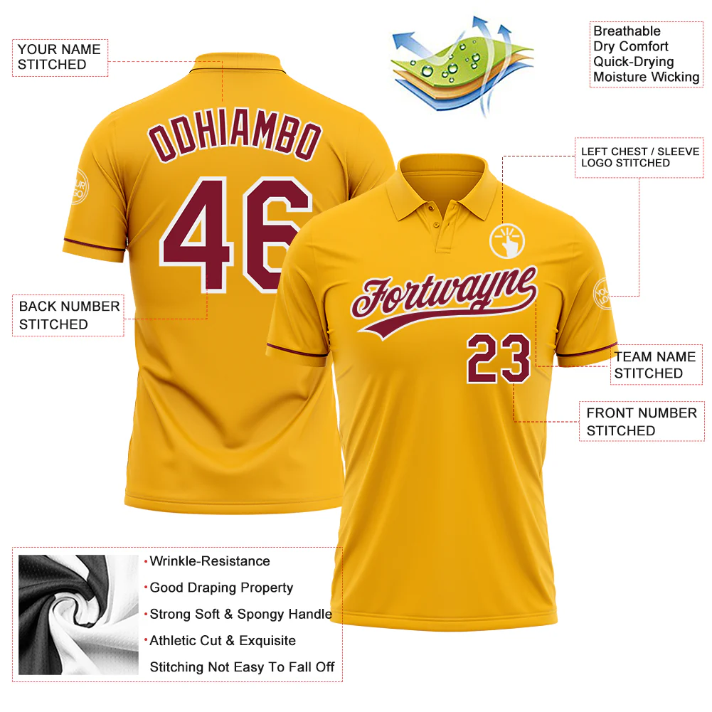 Custom Gold Crimson-White Performance Vapor Golf Polo Shirt