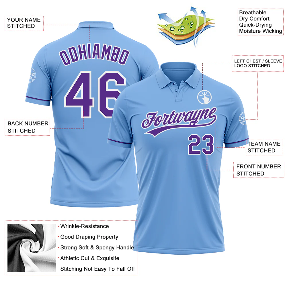 Custom Light Blue Purple-White Performance Vapor Golf Polo Shirt