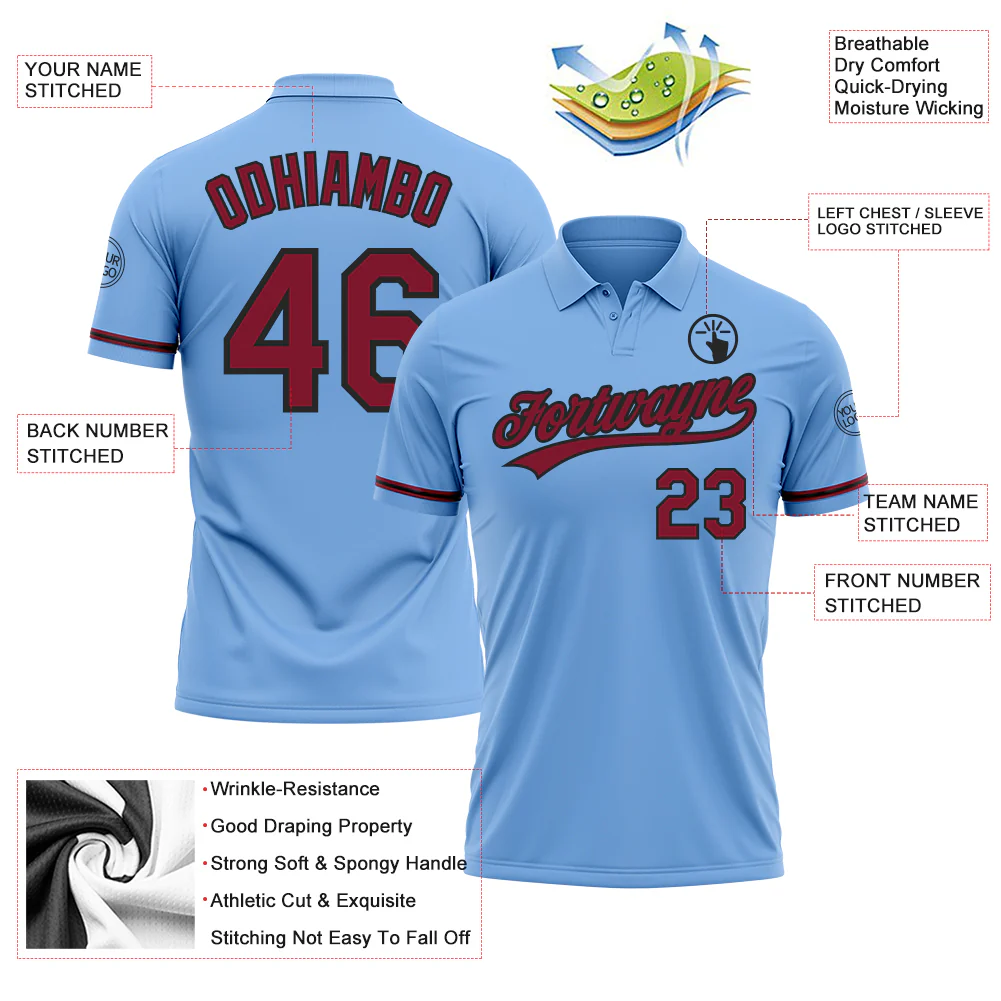 Custom Light Blue Crimson-Black Performance Vapor Golf Polo Shirt