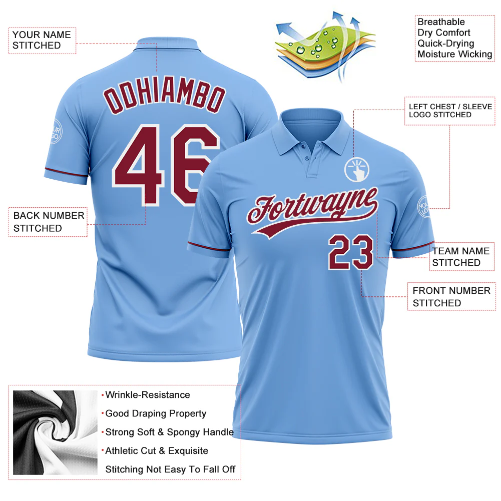 Custom Light Blue Crimson-White Performance Vapor Golf Polo Shirt