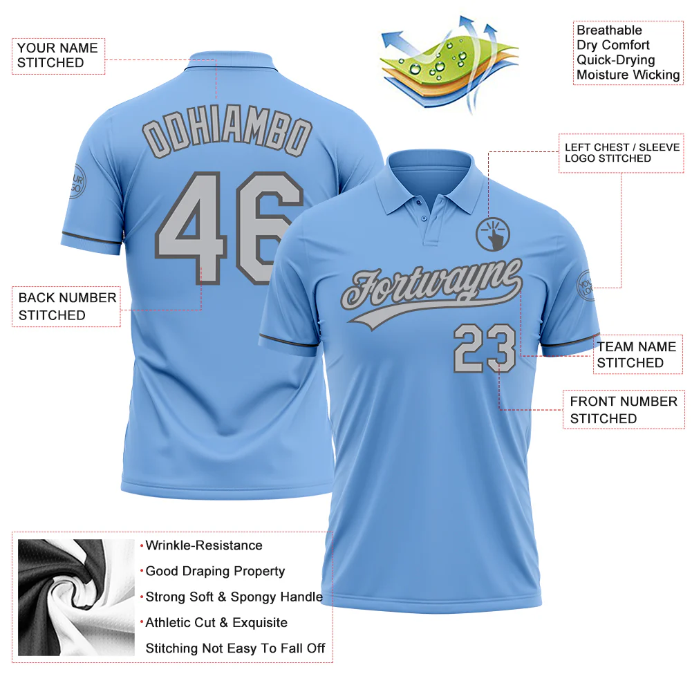 Custom Light Blue Steel Gray-White Performance Vapor Golf Polo Shirt