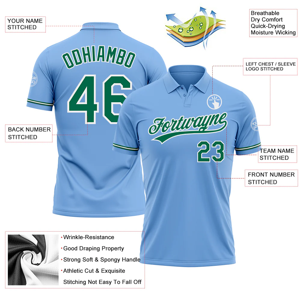 Custom Light Blue Kelly Green-White Performance Vapor Golf Polo Shirt