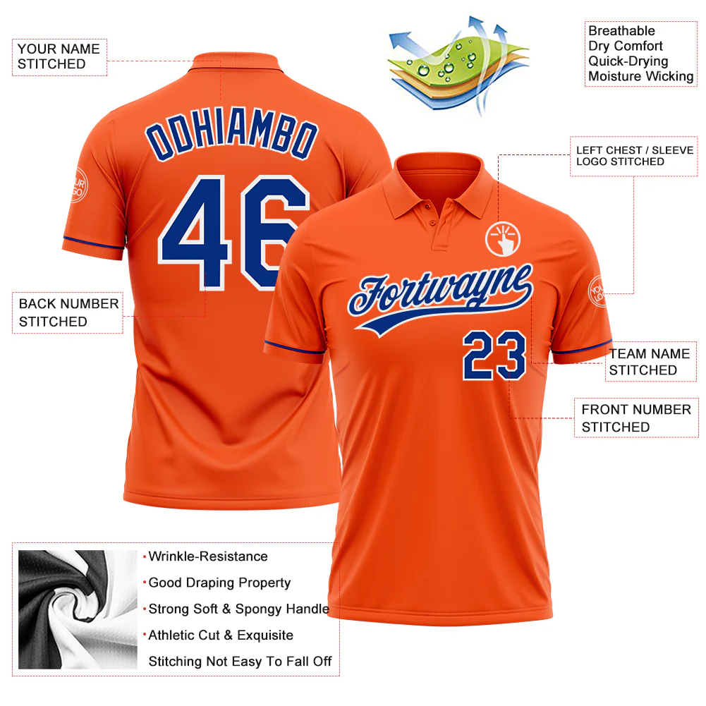 Custom Orange Royal-White Performance Vapor Golf Polo Shirt