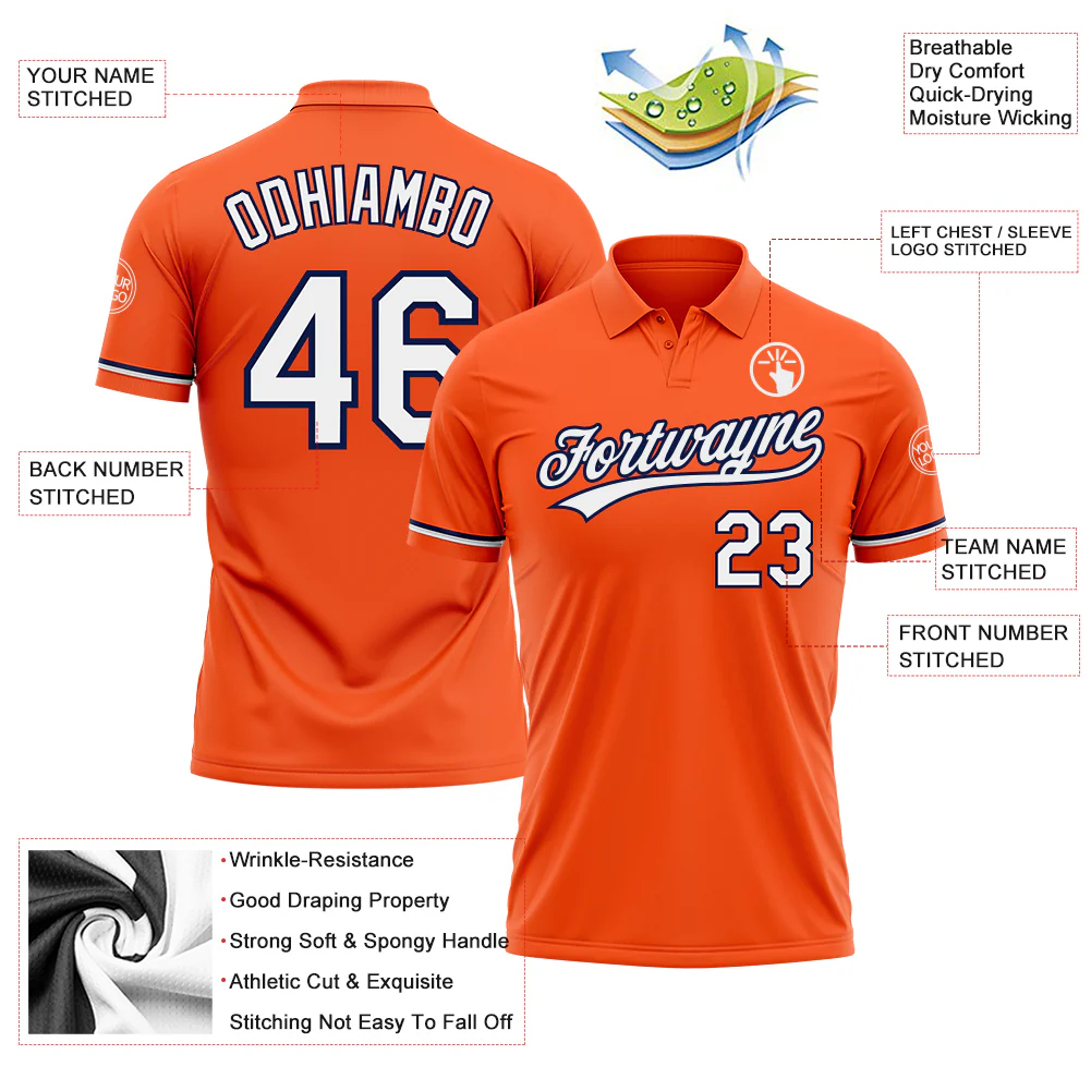 Custom Orange White-Navy Performance Vapor Golf Polo Shirt