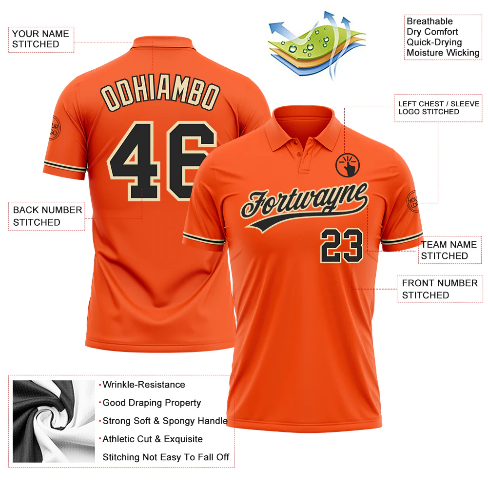 Custom Orange Black Cream-Old Gold Performance Vapor Golf Polo Shirt