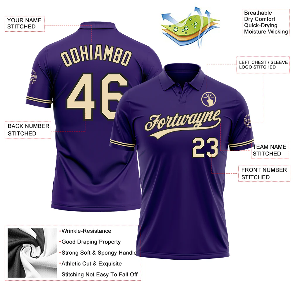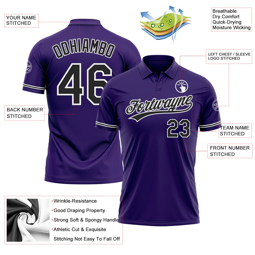 Custom Purple City Cream-Black Performance Vapor Golf Polo Shirt