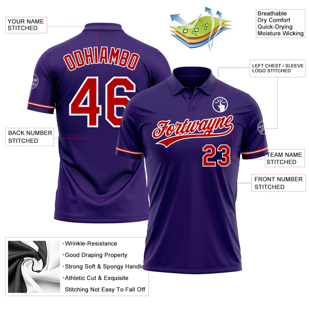 Custom Purple White-Red Performance Vapor Golf Polo Shirt