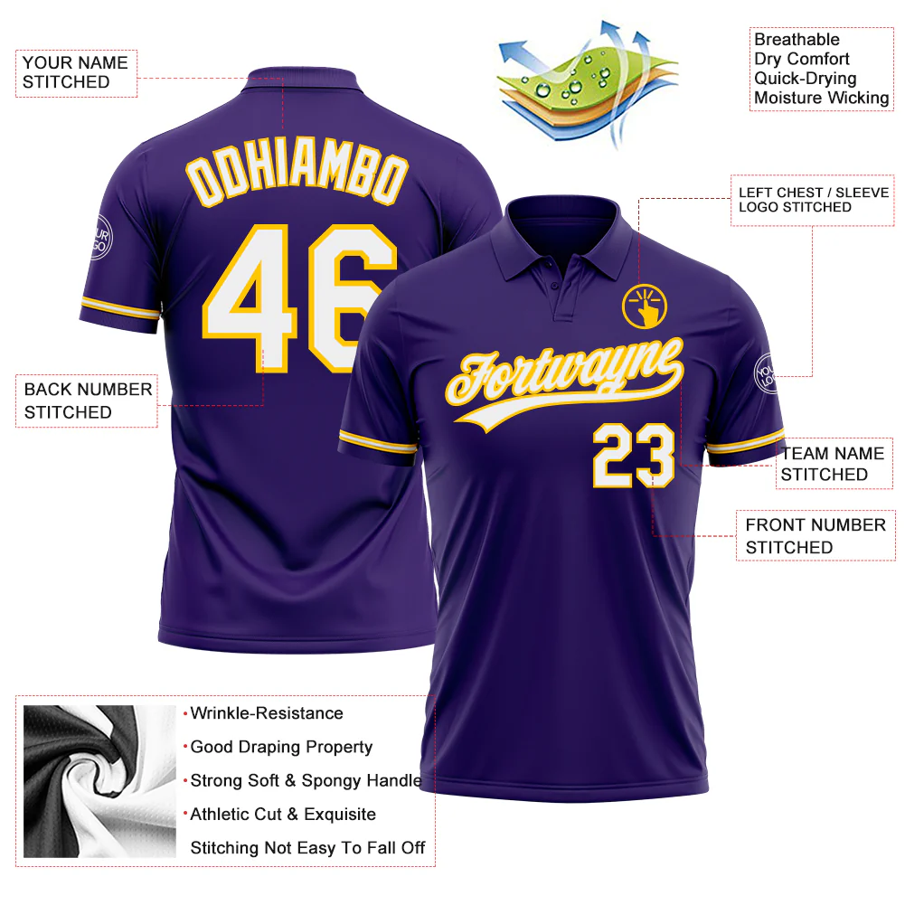 Custom Purple Gold-White Performance Vapor Golf Polo Shirt