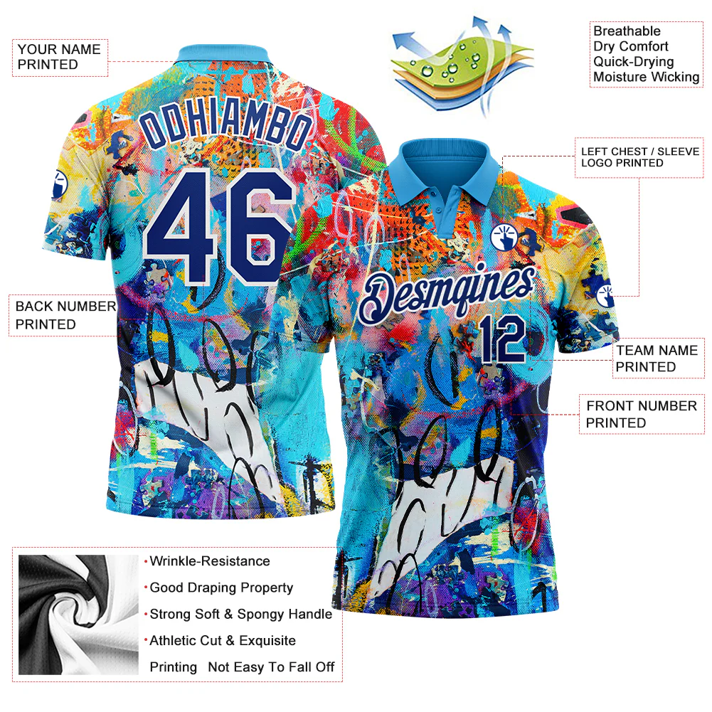 Custom Graffiti Pattern Royal-White 3D Performance Golf Polo Shirt