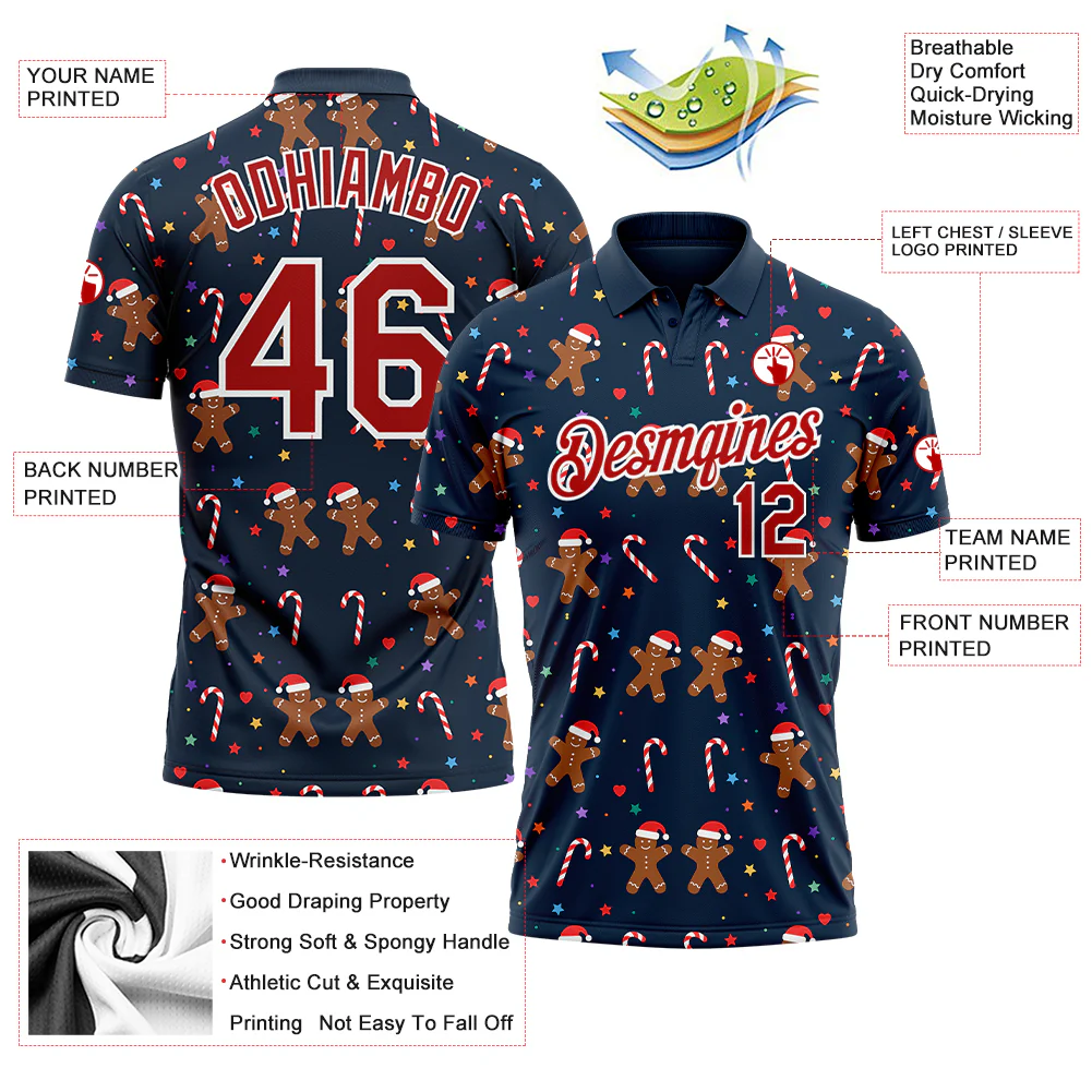 Custom Navy Red-White 3D Christmas Performance Golf Polo Shirt