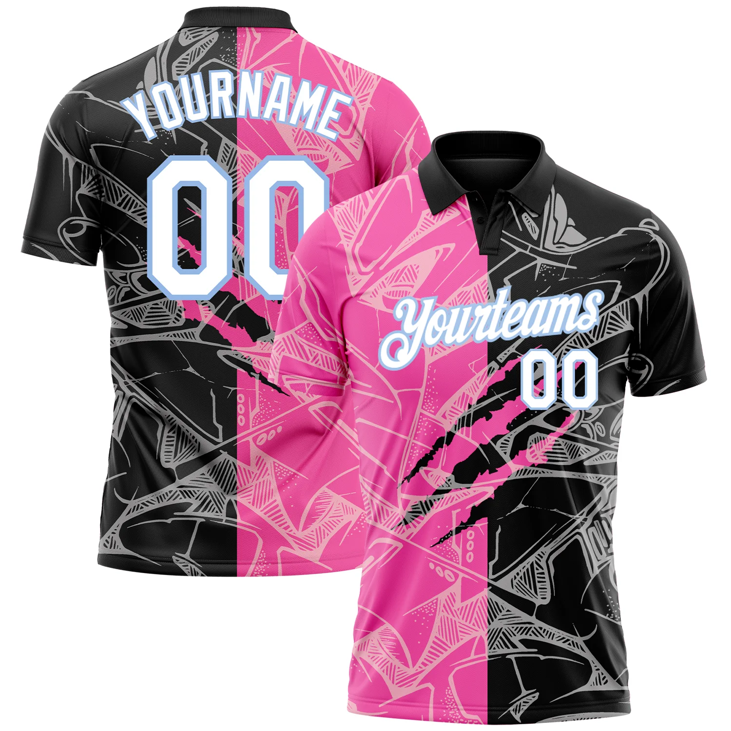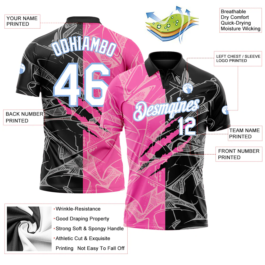 Custom Graffiti Pattern Pink-Purple 3D Performance Golf Polo Shirt