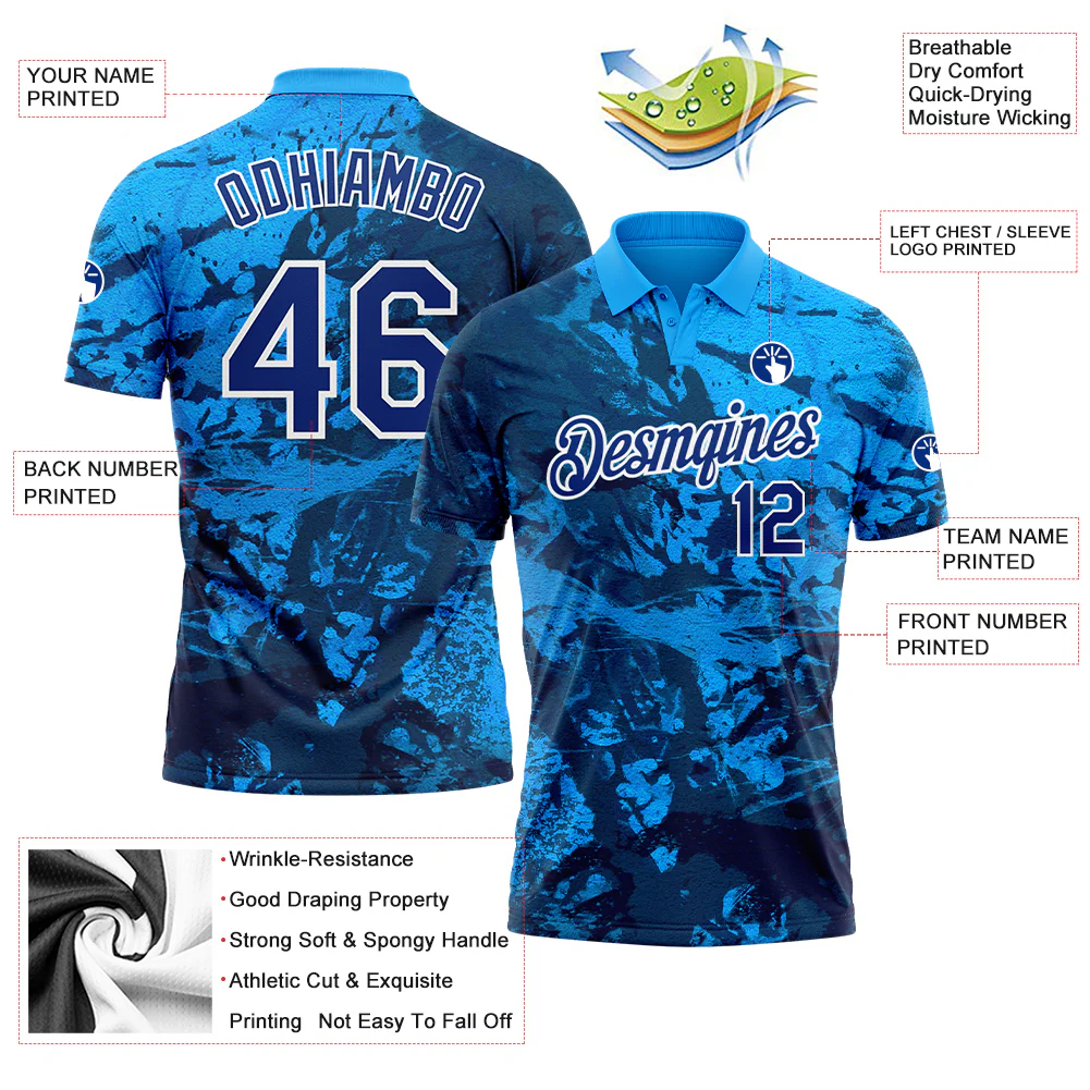 Custom Graffiti Pattern Royal-White 3D Performance Golf Polo Shirt