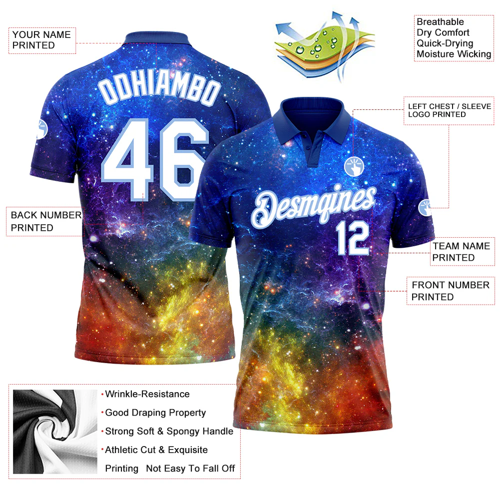 Custom Galactic White-Light Blue 3D Performance Golf Polo Shirt